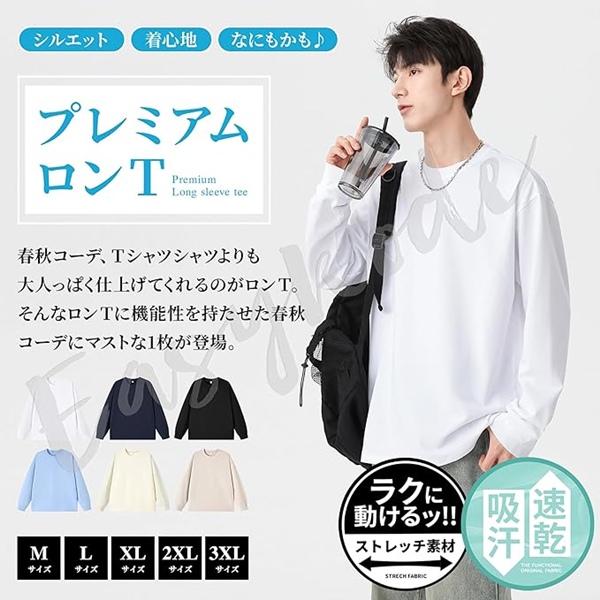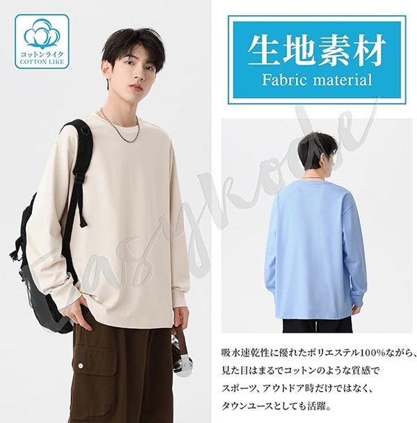 ●[Easykode] ロングtシャツ メンズ 長袖 Tシャツ 秋服 無地