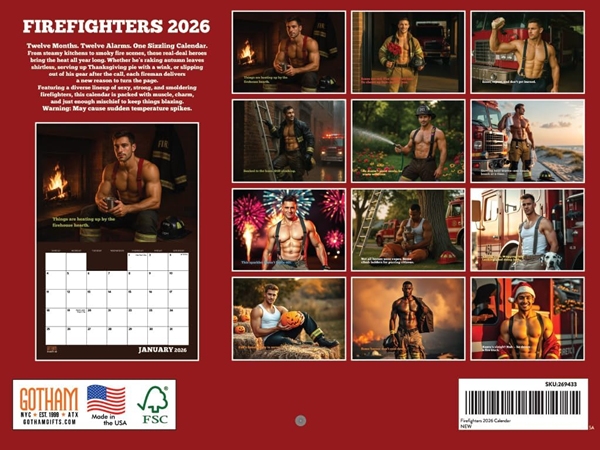 ●セクシー 消防士カレンダー 2026年 ホット消防士 マンスリー ウォールカレンダー 12か月